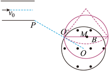 (3)仅改变圆形磁场区域的位置,使粒子仍从图中O'点射入磁场,且在磁场中的运动时间最长。定性画出粒子在磁场中的运动轨迹及相应的弦,标出改变后的侧形磁场区域的圆心M。