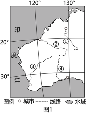 某研学小组计划在澳大利亚西部开展一次旅行并做野外考察。下图1为该团队初拟的四条活动线路,图2为澳大利亚三种典型自然植被的景观图。完成下面小题。