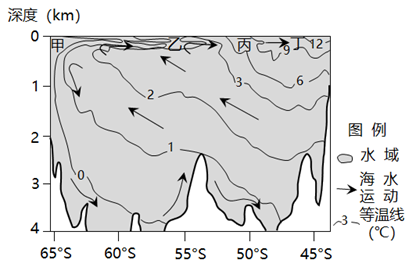 下图为南半球部分海域水温分布和海水运动示意图。完成下面小题。