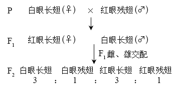 4. 纯合亲本白眼长翅和红眼残翅果蝇进行杂交,结果如图。F2中每种表型都有雌、雄个体。根据杂交结果,下列推测错误的是( )