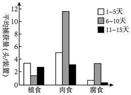 18.(1)6-10天肉食动物和腐食动物的平均捕获量显著增加,植食动物平均捕获量明显减少