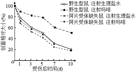 14. 研究者检测了长期注射吗啡的小鼠和注射生理盐水的小鼠伤口愈合情况,结果如图。由图可以得出的结论是( )
