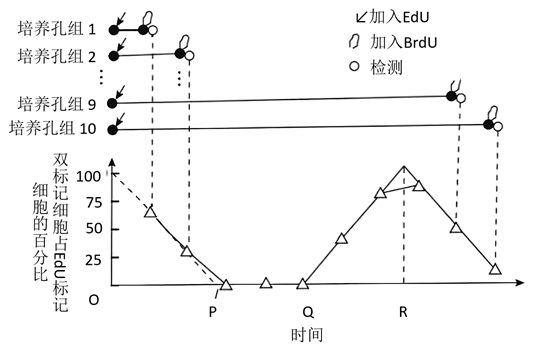 (2)将处于细胞周期不同阶段的细胞混合培养于多孔培养板中,各孔同时加入EdU,随后每隔一定时间向一组培养孔加入BrdU,再培养十几分钟后收集该组孔内全部细胞,检测双标记细胞占EdU标记细胞的百分比(如图)。图中反映DNA复制所需时长的是从___________点到___________点。