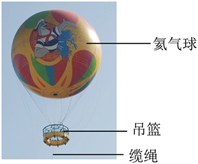 35. 某景区有乘氦气球升空的观光项目。如图所示,氦气球内充满氦气,下端连接吊篮,在吊篮底端有一根缆绳,通过缆绳来控制氦气球的升降。氮气球的体积为