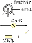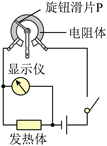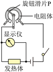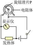 15. 科学兴趣小组开展“制作可调式电热水壶”的活动。设计电路时要求满足:闭合开关后,顺时针调节变阻器的旋钮滑片P时,通过发热体的电流增大,产热加快;同时反映发热体功率高低的显示仪(电压表)示数增大。下列设计符合要求的是( )