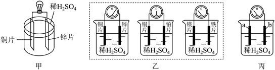 ,可以组成一个电池(图甲)。那么该电池的正负极与什么有关呢?对此,小敏做了三组实验,并借助灵敏电流表进行判断(图乙),发现该电池的正负极与金属活动性强弱有关且存在一定规律。据此判断,下列金属片组合可以使电流表指针向左偏转(图丙)的是( )