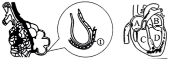 (1)肺泡周围缠绕着丰富的结构①是_______(填血管名称)。