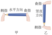 20. 在探究压力作用效果与受力面积的关系时,小敏用拇指和食指分别以如图两种方式压在铅笔两端;