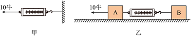 (2)小敏取下弹簧秤,连接在两个相同木块之间(图乙),用水平向左10牛的力使整体一起做匀速直线运动。此时弹簧秤的读数__________(选填“>”、“=”或“<”)图甲中的读数,木块A所受到的摩擦力为__________牛。