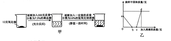 31. 在探究酸、碱性质时,小敏的操作过程如图甲所示,烧杯中固体质量与加入溶液的质量关系如图乙所示。请回答下列问题: