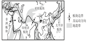 A. 非洲板块和亚欧板块交界处 B. 亚欧板块和太平洋板块交界处