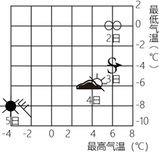 下图示意北京某月2日一5日天气观察记录,据此完成下面小题。