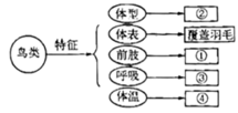 21. 某同学尝试完成填写鸟类部分特征关系图(如图),其中填写错误的是( )