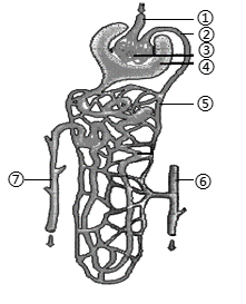 D. ⑥中的血液与①中的血液相比,⑥中氧气和尿素含量明显减少
