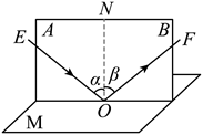 14. 如图所示,平面镜M水平放置,白色纸板竖直地立在平面镜上,纸板由A、B两部分组成,可绕接缝
