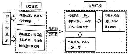 (1)阅读上图,运用框图填空说明塔里木盆地的地理位置及其对自然环境的影响。