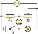 12. 如图,电源电压为18V,小灯泡规格为“10V,10W”且不考虑灯丝电阻随温度变化,R1为定值电阻。R2为滑动变阻器,最大阻值为60Ω。甲乙是同种电表,可供选择的电表为双量程电压表(量程分别为0~3V,0~15V)和电流表(量程分别为0~0.6A;0~3A)。闭合开关,在保证电路安全的情况下,调节滑动变阻器R?,两表示数均有变化且小灯泡亮度发生改变。当小灯泡正常发光时,甲、乙两表示数之比为8:13。下列表述均正确且无遗漏的一组是:( )
