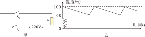 23. 小明同学设计了一款自动控温烧水壶,其电路原理如图甲所示。S1为温控开关,当温度低于98℃时自动闭合,当温度达到100℃时自动断开。电源电压恒为220V,S为总开关。R为水壶的电热丝,其阻值是44Ω。