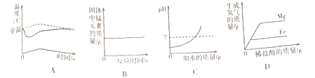 D. 向等质量的镁和铁中分别加入足量等浓度的稀盐酸
