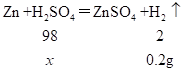 【答案】(1)0.2 (2)设所用稀硫酸溶质的质量为x,则