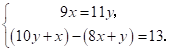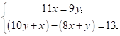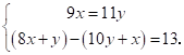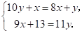 10. 《九章算术》是我国古代数学的经典著作,书中有一个问题:“今有黄金九枚,白银一十一枚,称之重适等,交易其一,金轻十三两,问金、银各重几何?”意思是:甲袋中装有黄金9枚(每枚黄金重量相同),乙袋中装有白银11枚(每枚白银重量相同),称重两袋相等,两袋互相交换1枚后,甲袋比乙袋轻了13两(袋子重量忽略不计),问黄金、白银每枚各重多少两?设每枚黄金重x两,每枚白银重y两.根据题意得( )