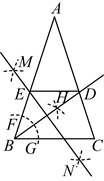 的长为半径作弧,两弧相交于点H,作射线BH交AC于点D;分别以点B和点D为圆心,大于