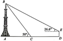 16. 在一次综合实践活动中,某学校数学兴趣小组对一电视发射塔的高度进行了测量.如图,在塔前C处,测得该塔顶端B的仰角为