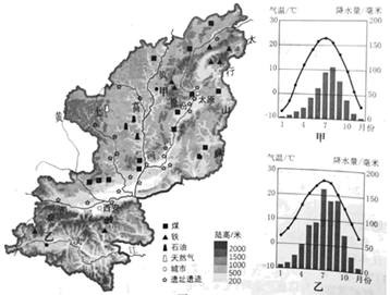 27.陕西省和山西省是我国传统农业和能源大省,近年来两省积极探索高质量发展之路。图为陕西省和山西省简图及甲、乙两地气温曲线和降水量柱状图。阅读图文资料,回答下列问题。