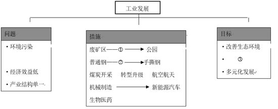 (1)陕西省简称 ,山西省行政中心是 。两省有丰富的 、石油、天然气等能源矿产,正努力实现传统能源工业转型升级。根据资料,将“环境治理”“提高经济效益”“技术研发“填入框图中相应的位置。