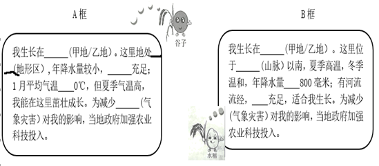 (2)根据资料,结合图中甲、乙两地的自然条件,在A框、B框中选择其一作答。