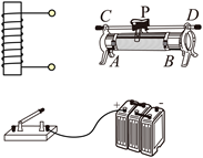 16. 如图,用笔画线代替导线将图中实物连接起来。要求:闭合开关后,通电螺线管的上端为N极,当滑动变阻器的滑片P向左移动时,通电螺线管的磁性增强。
