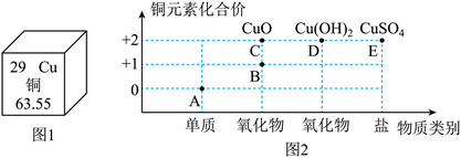 11.铜是我们日常生活中经常接触到的金属材料。图1是铜在元素周期表中的相关信息。图2是铜及其化合物的“价-类二维图”模型。请根据图中信息,回答下列问题: