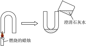 ③蜡烛燃烧10秒后,将U形管快速倒过来,立即向U形管中注入少量的澄清石灰水.振荡,观察实验现象。
