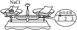 (2)用托盘天平称取5.0g粗盐,用药匙将该粗盐逐渐加入盛有10mL水(密度为1