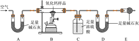 该氧化钙样品放在装置B的玻璃管中,先通入一会空气,再称量C、D装置的质量,然后边通入空气,边用酒精喷灯加热(能达到