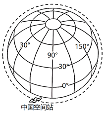 2022年4月27日黎明时分,某地出现金星、火星、木星与土星“四星伴月”的天文现象。此时中国空间站过境该地上空,与“四星伴月”同框,形成壮美景观。下图为“某时刻中国空间站在轨位置上方俯视示意图”。据此完成下面小题。