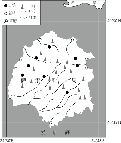 (1)简述萨索斯岛古镇和新镇的空间分布特征。