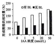 D. 0~50nmol/L IAA浓度范围内,BL与IAA协同作用表现为低浓度抑制、高浓度促进