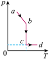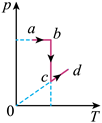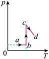 依次经过ab、bc和cd三个热力学过程达到状态d。若该气体的体积V随热力学温度T变化的V-T图像如图所示,则对应的气体压强p随T变化的p-T图像正确的是( )