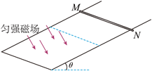 7. 如图所示,与水平面夹角为θ的绝缘斜面上固定有光滑U型金属导轨。质量为m、电阻不可忽略的导体杆MN沿导轨向下运动,以大小为v的速度进入方向垂直于导轨平面向下的匀强磁场区域,在磁场中运动一段时间t后,速度大小变为2v。运动过程中杆与导轨垂直并接触良好,导轨的电阻忽略不计,重力加速度为g。杆在磁场中运动的此段时间内( )