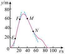 8. 某实验小组测得在竖直方向飞行的无人机飞行高度y随时间t的变化曲线如图所示,E、F、M、N为曲线上的点,EF、MN段可视为两段直线,其方程分别为
