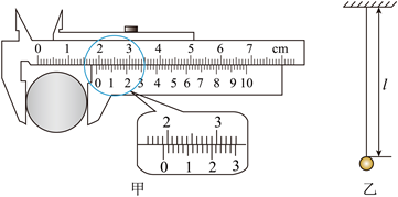 (1)用游标卡尺测量摆球直径d。当量爪并拢时,游标尺和主尺的零刻度线对齐。放置摆球后游标卡尺示数如图甲所示,则摆球的直径d为________mm。