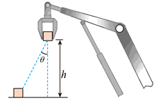 13. 机械臂广泛应用于机械装配。若某质量为m的工件(视为质点)被机械臂抓取后,在竖直平面内由静止开始斜向上做加速度大小为a的匀加速直线运动,运动方向与竖直方向夹角为θ,提升高度为h,如图所示。求: