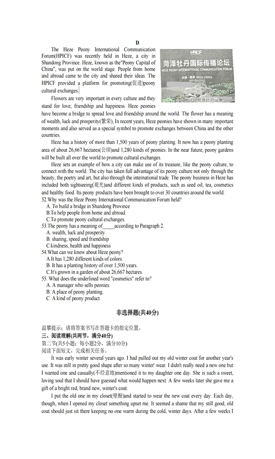 第二节 完形填空(共10小题;每小题1分, 满分10分)