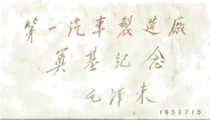 15. 下图是毛泽东同志为第一汽车制造厂奠基纪念的题词。该厂建成于( )