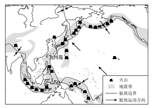 13.九州岛火山地震频发是因其位于太平洋板块与( )