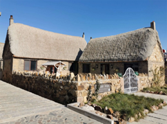 山东青岛传统民居海草房以石为墙,以海草为顶,屋顶高耸,适应了当地夏季多风雨的自然环境。下图分别为“青岛位置示意图”“海草房景观图”。据此完成下面小题。