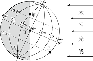 (4)甲、乙、丙、丁四地中,昼夜平分的是 。
