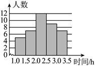 12.七(1)班40名同学上周家务劳动时间的频数分布直方图如图所示,设这组数据的中位数为mh,则m 2.6(填“>”“=“<”)