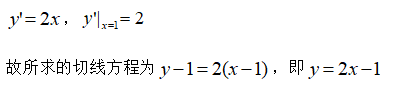 24. 【解答题】求曲线y=x2在点(1,1)处的切线方程.